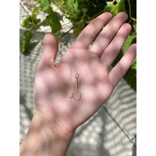 Vintage 14k Yellow Gold Pearl Tennis Racket & Ball Charm