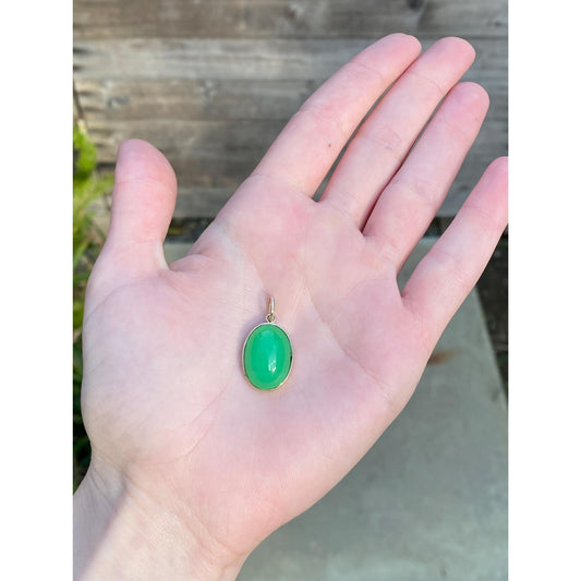 Vintage Solid 14k Yellow Gold Green Chalcedony Cufflink Conversion Charm