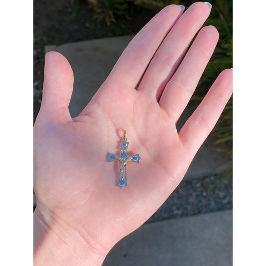 Vintage Solid 18k White & Yellow Gold Crucifix Cross Charm