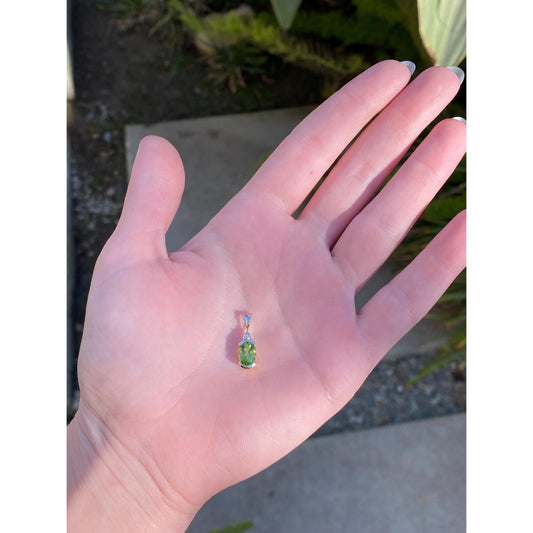 Solid 14k Yellow Gold Diamond Peridot Charm