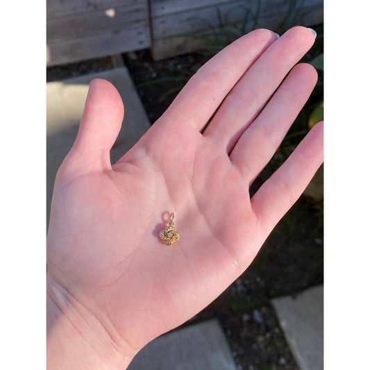 Vintage Solid 14k Yellow Gold Diamond Spiral Drop Circle Charm