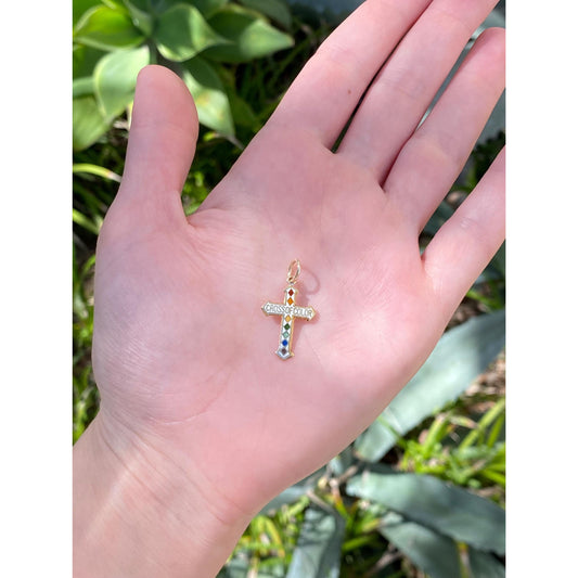 Vintage Solid 10k Yellow Gold Enamel 'Cross of Color' Cross Charm