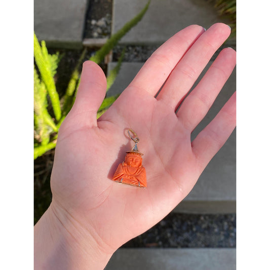 Vintage Solid 10k Yellow Gold Carved Coral Red Cubic Zirconia Buddah Charm