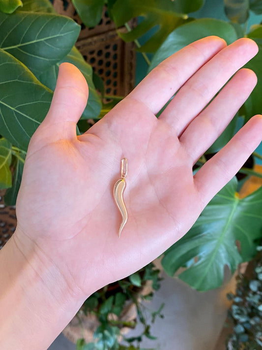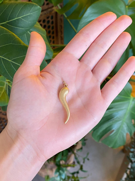 Vintage 18k Yellow Gold Large Satin Italian Horn Charm