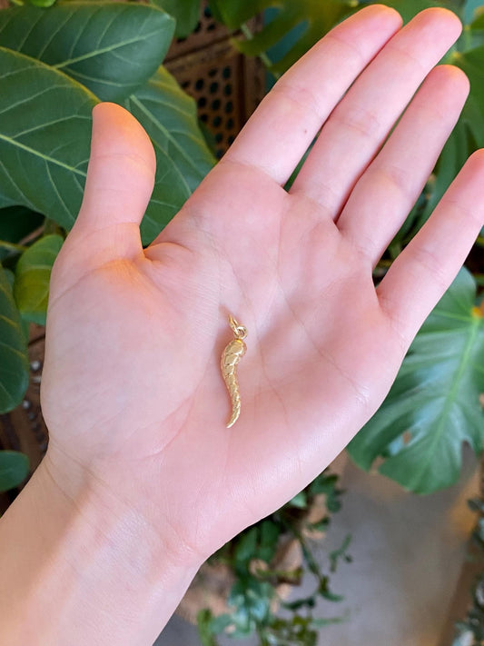 Vintage Solid 18k Yellow Gold Design Italian Horn Charm