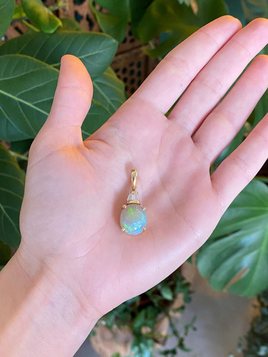 Vintage Solid 14k Yellow Gold Diamond Opal Charm