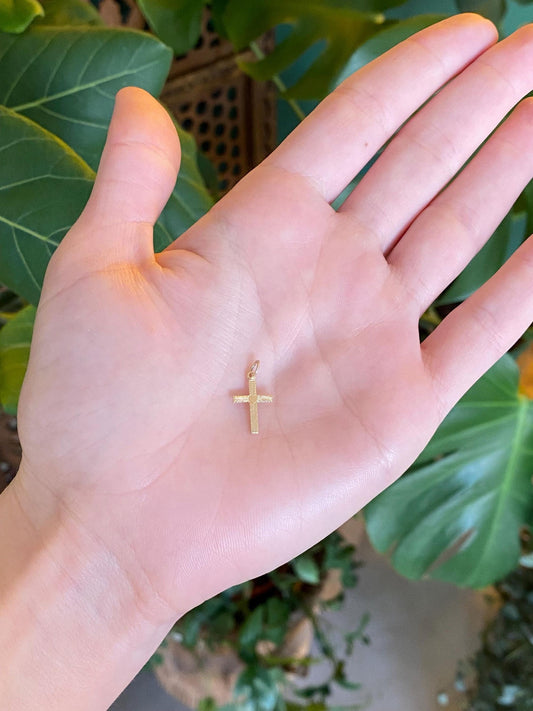 Vintage Solid 14k Yellow Gold Little Heart Cross Charm