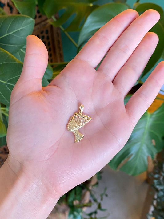Vintage Solid 14k Yellow Gold Filigree Nefertiti Charm