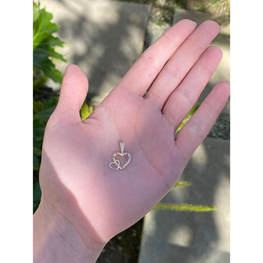 Vintage Solid 14k Yellow Gold Diamond Cut Hearts Charm