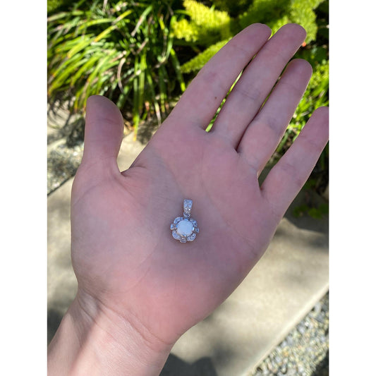Vintage Solid 10k White Gold Diamond Opal Charm