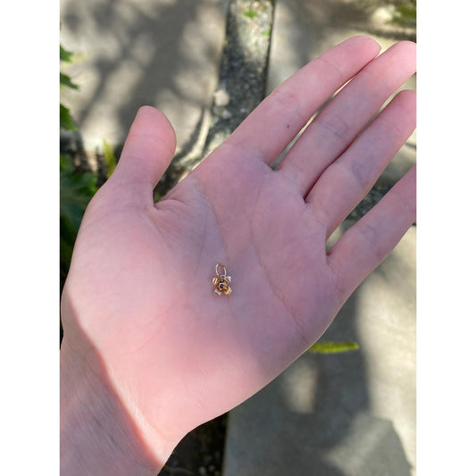 Vintage Solid 18k Yellow Gold Red Spinel Flower Charm