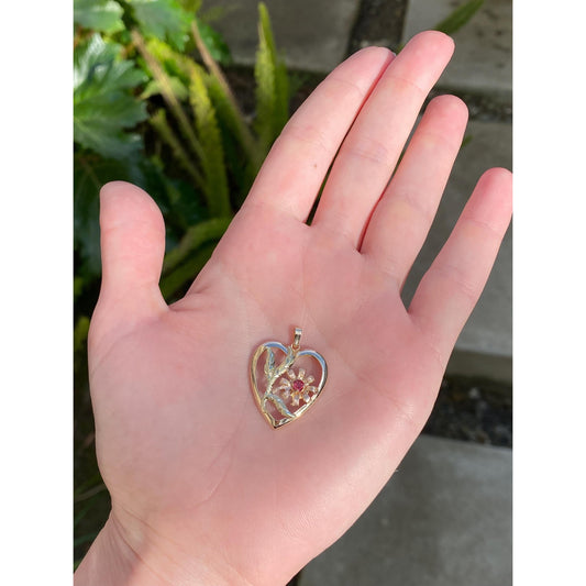 Vintage Solid 14k Multi Tone Gold Pink Cubic Zirconia Flower Heart Charm