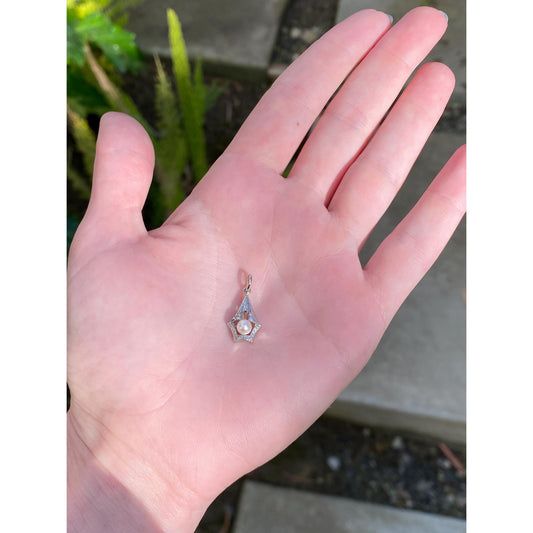 Vintage Solid 14k White & Yellow Gold Pearl Art Deco Charm