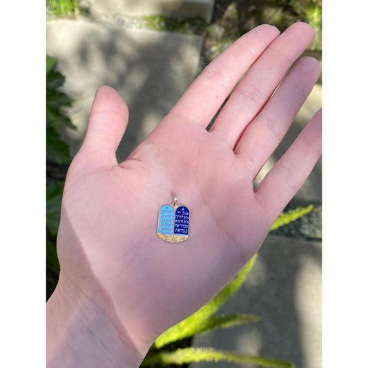 Vintage Solid 14k Yellow Gold Enamel Hebrew 10 Commandments Charm
