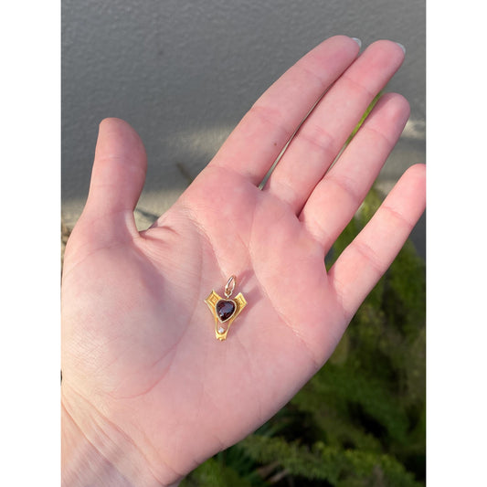 Vintage Solid 10k Yellow Gold Garnet Heart Seed Pearl Stick Pin Conversion Charm