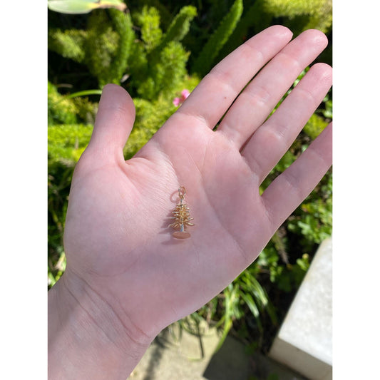 Vintage Solid 14k Yellow Gold Green Enamel Palm Tree Charm