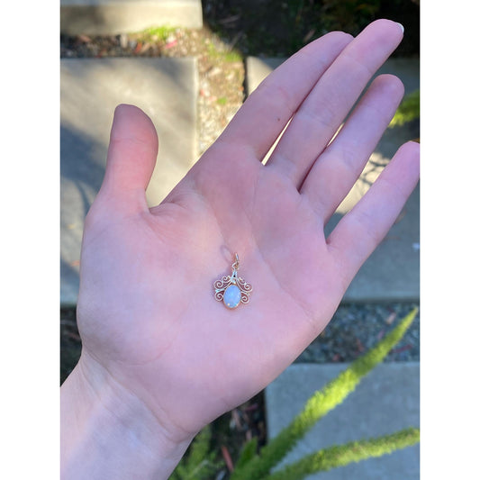 Vintage Solid 14k Yellow Gold Ornate Border Opal Charm