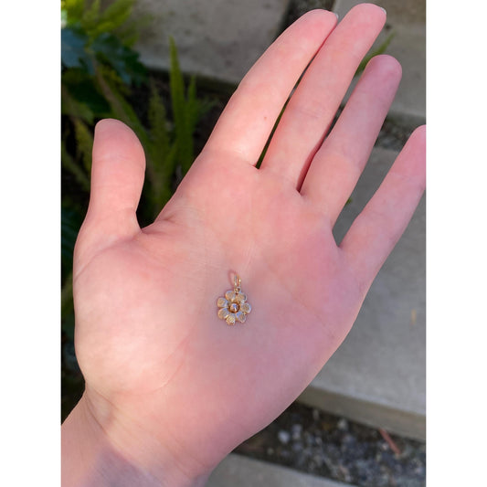 Vintage Solid 14k Yellow Gold Diamond Seed Pearl Wavy Star Charm