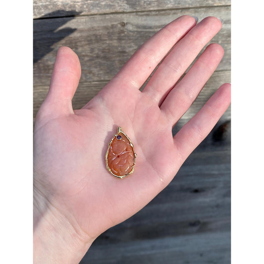 Vintage Solid 14k Yellow Gold Carved Coral Ruby Charm