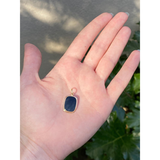 Vintage Solid 14k Yellow Gold Onyx Cufflink Conversion Charm