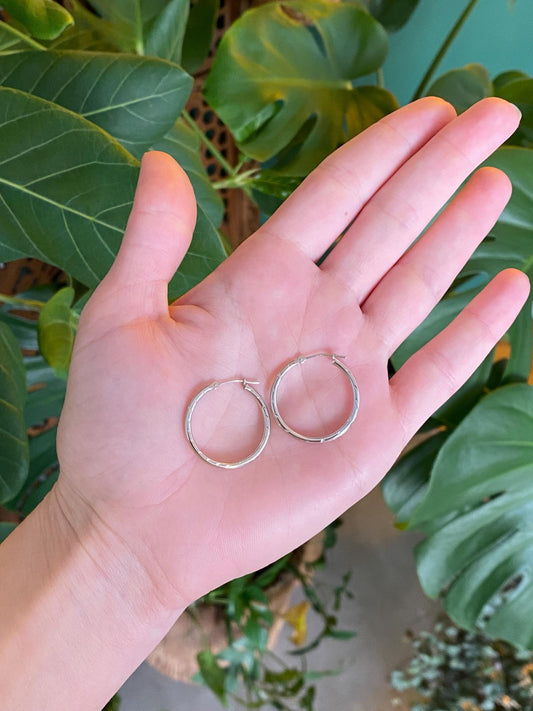 Vintage 14k White Gold Diamond Cut Hoop Earrings