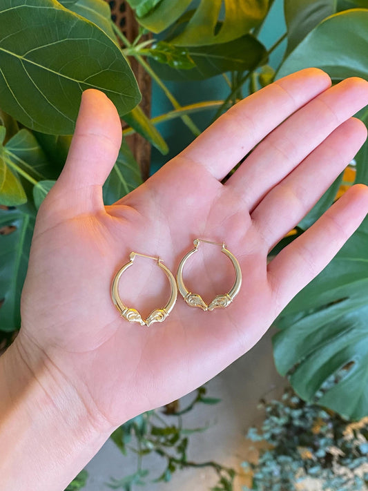 Vintage 14k Yellow Gold Scalloped Hoop Earrings