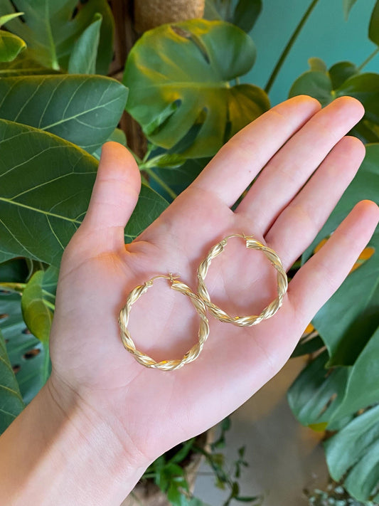 Vintage 14k Yellow Gold Twist Hoop Earrings