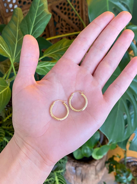 Vintage 14k Yellow Gold Diamond Cut Hoop Earrings