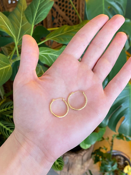 Vintage Solid 14k Yellow Gold Chunky Textured Hoop Earrings