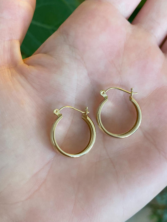 Vintage 14k Yellow Gold Small Pattern Hexagonal Hoop Earrings