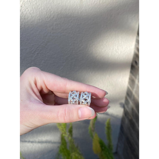 Vintage Solid 14k White Gold Diamond Floral Hoop Earrings