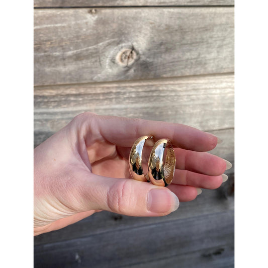 Vintage 14k Yellow Gold Textured Hoop Earrings