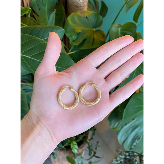 Vintage 14k Yellow Gold Textured Twist Hoop Earrings