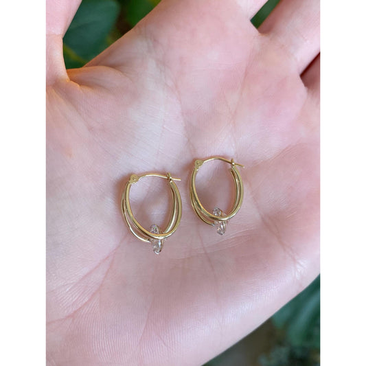 Vintage 14k Yellow Gold Cubic Zirconia Little Hoop Earrings