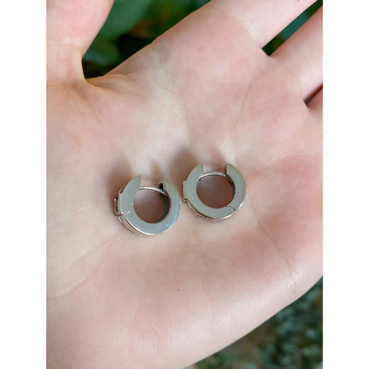 Vintage Solid 14k White Gold Faceted Hoop Earrings