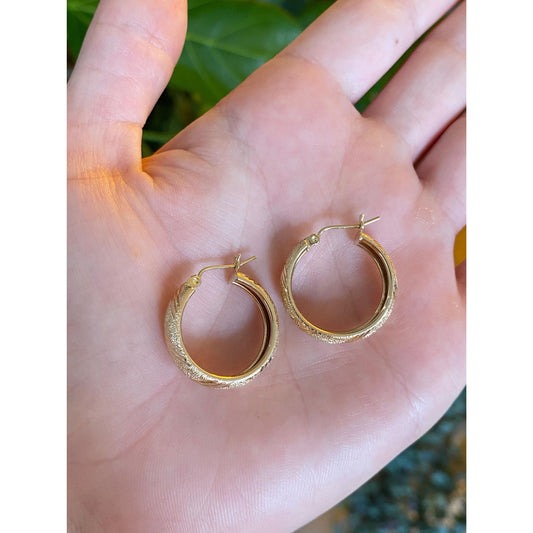 Vintage Solid 14k Yellow Gold Diamond Cut Hoop Earrings