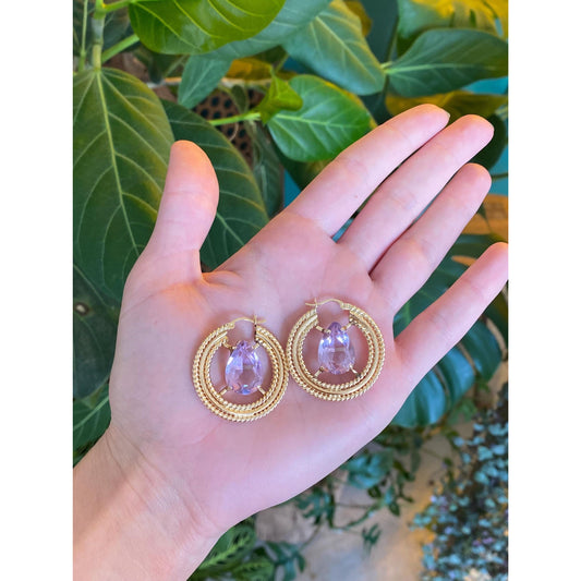 Vintage 14k Yellow Gold Amethyst Hoop Earrings