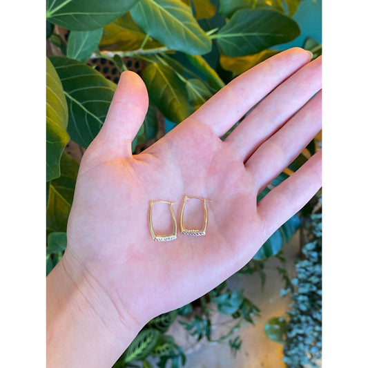Vintage 14k White & Yellow Gold Diamond Cut Rectangle Hoop Earrings