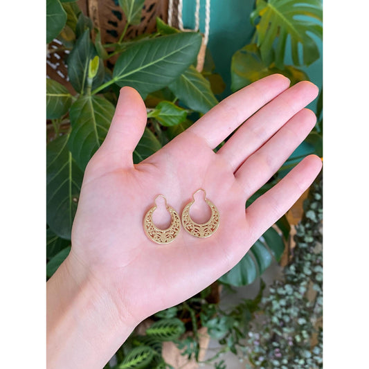 Vintage Solid 14k Yellow Gold Open Work Hoop Earrings