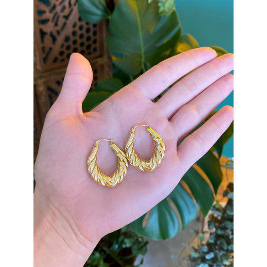 Vintage 14k Yellow Gold Twist Hoop Earrings