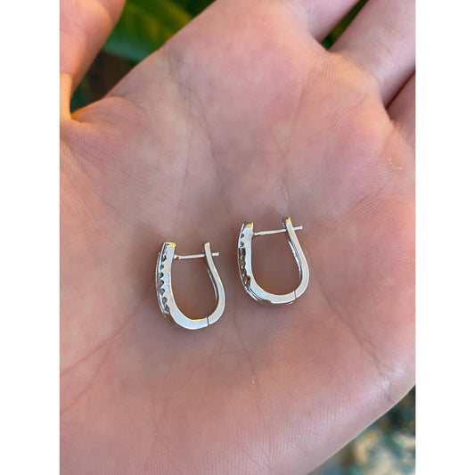 Vintage Solid 14k White Gold Diamond Hoop Earrings