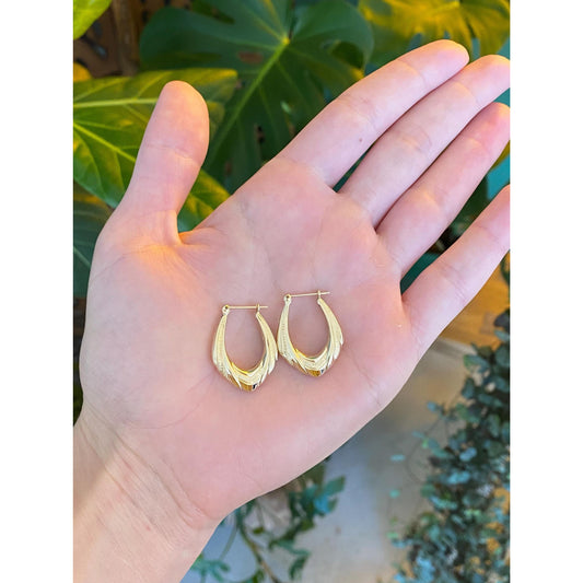 Vintage 14k Yellow Gold Oval Middle Ribbed Hoop Earrings
