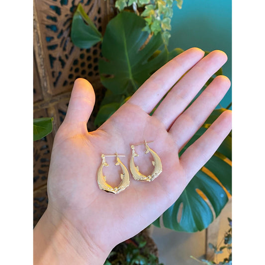 Vintage Solid 10k Yellow Gold Diamond Cut Designed Hoop Earrings