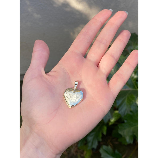 Vintage Solid 14k Yellow Gold Large Floral Engraved Locket Charm