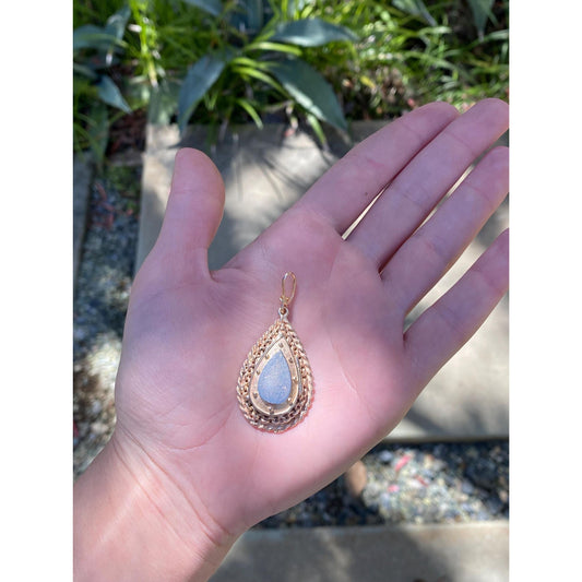 Vintage Solid 14k Yellow Gold Chain Border Teardrop Locket Charm