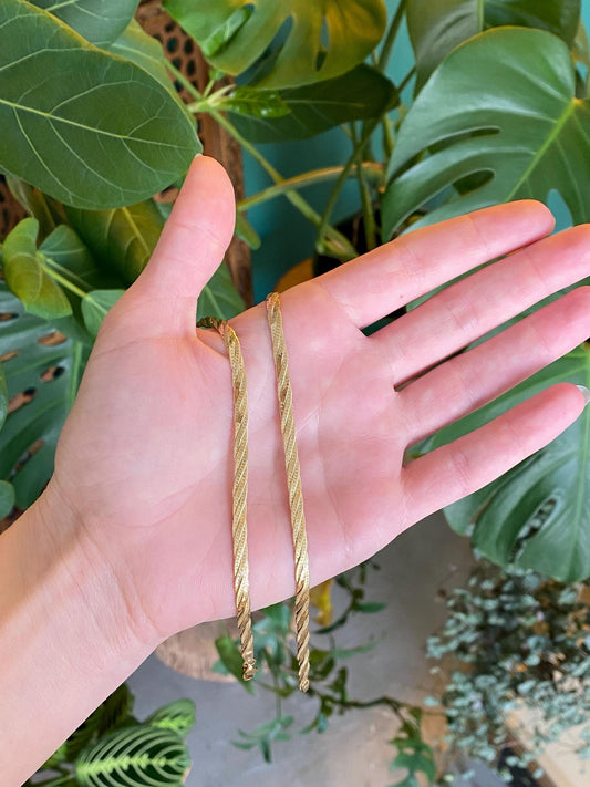 Vintage Solid 14k Yellow Gold Braided Flat Chain Necklace - 15.75 inches