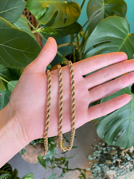 Vintage 14k Yellow Gold Rope Chain Necklace - 18.75 inches