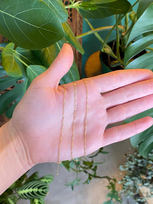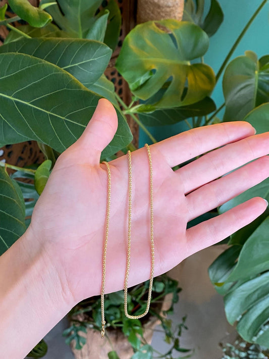 Vintage Solid 14k Yellow Gold Dainty Elongated Cable Chain Necklace - 16 inches