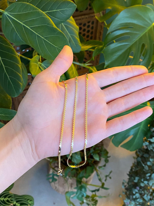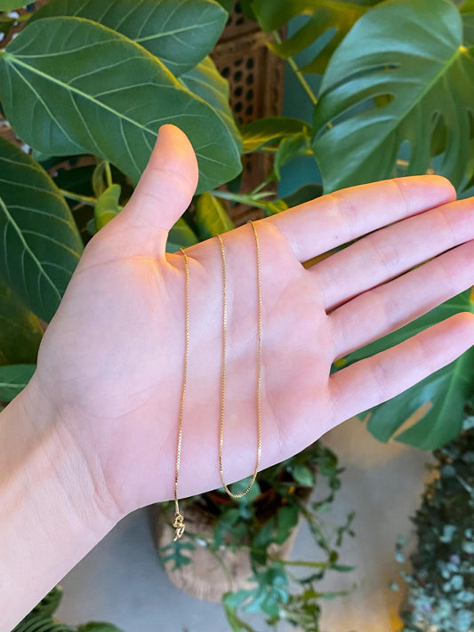 Vintage Solid 14k Yellow Gold Dainty Box Chain Necklace - 18 inches