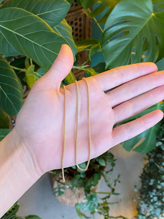 Vintage Solid 14k Yellow Gold Slim Rope Chain Necklace - 18 inches
